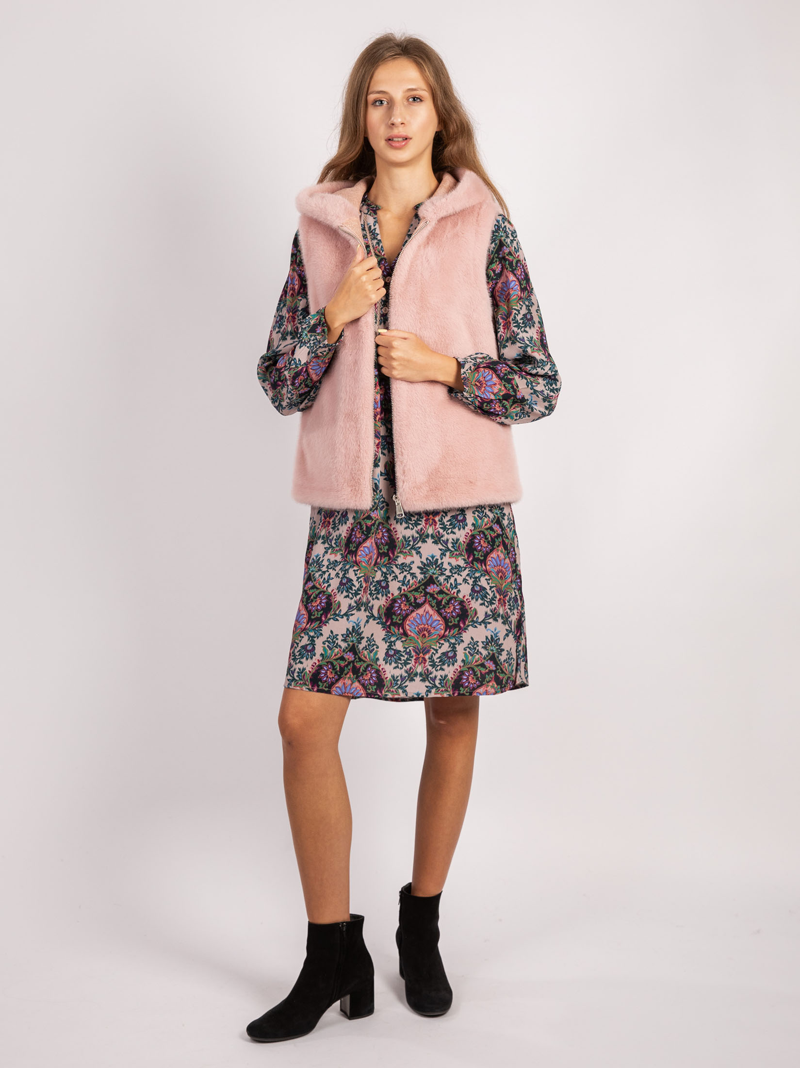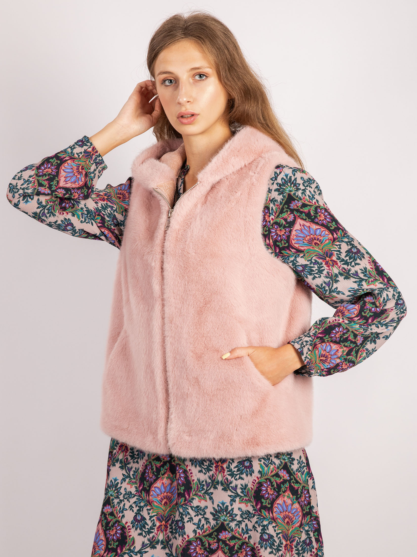 Westen in Felloptik zählen zu den Top-Trends der Saison. Entdecken Sie unsere exklusive ärmellose Weste, gefertigt aus luxuriösem Kunstpelz. Diese Weste besticht durch ihren geraden Schnitt, Kapuze und Innenfutter für ein komfortables Tragegefühl und wird durch Reißverschluss elegant geschlossen. Die schrägen Taschen bieten nicht nur Komfort, sondern auch zusätzliche Wärme.