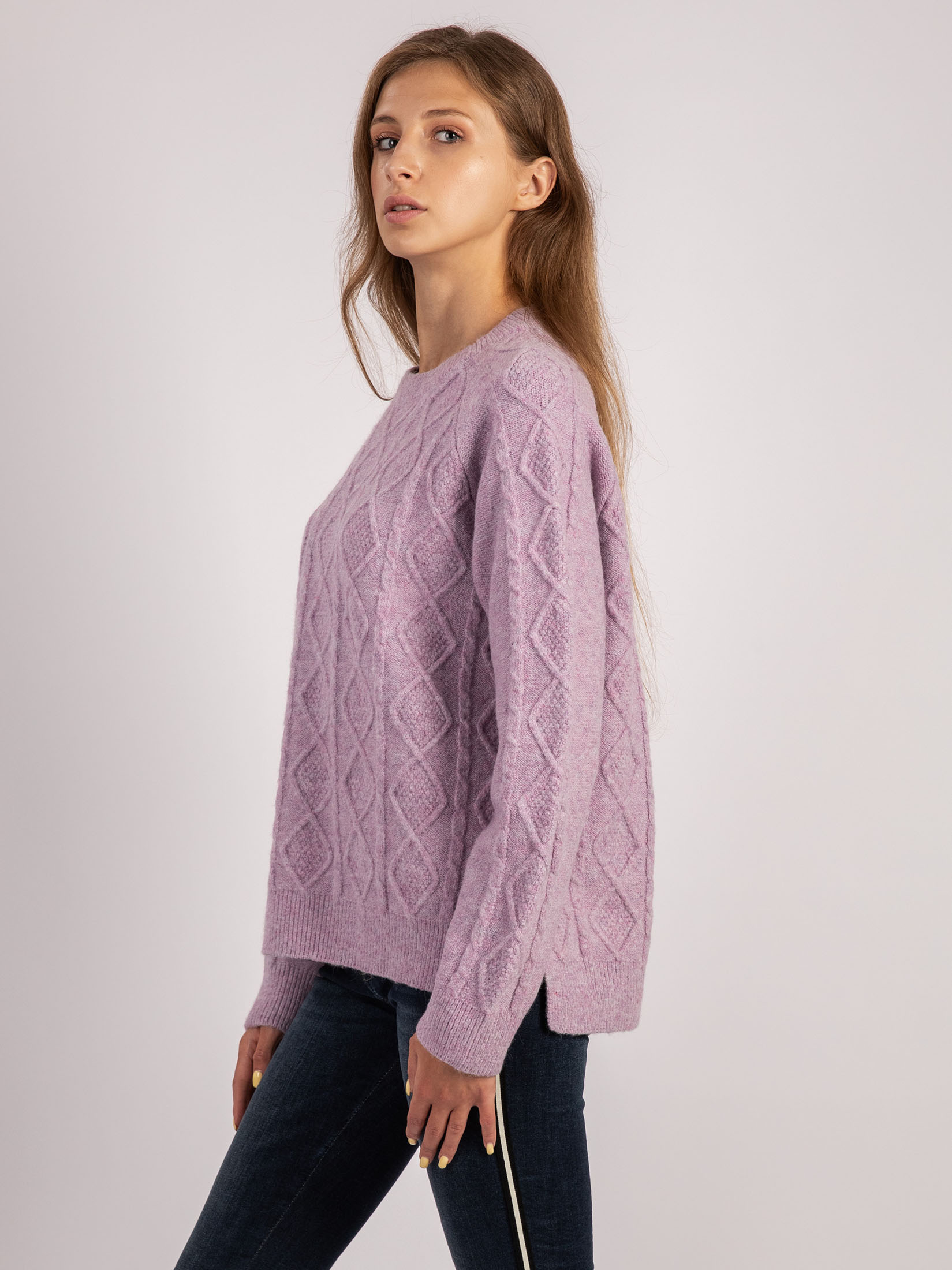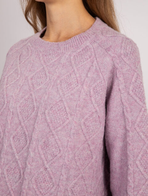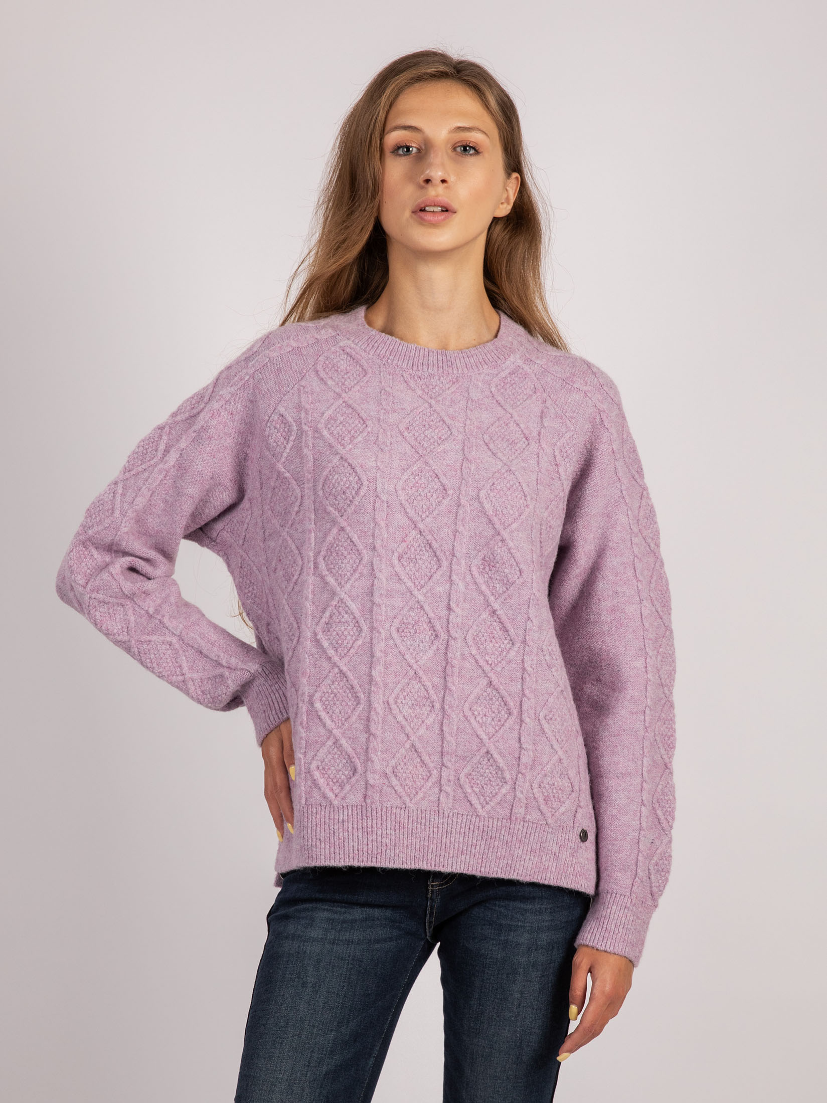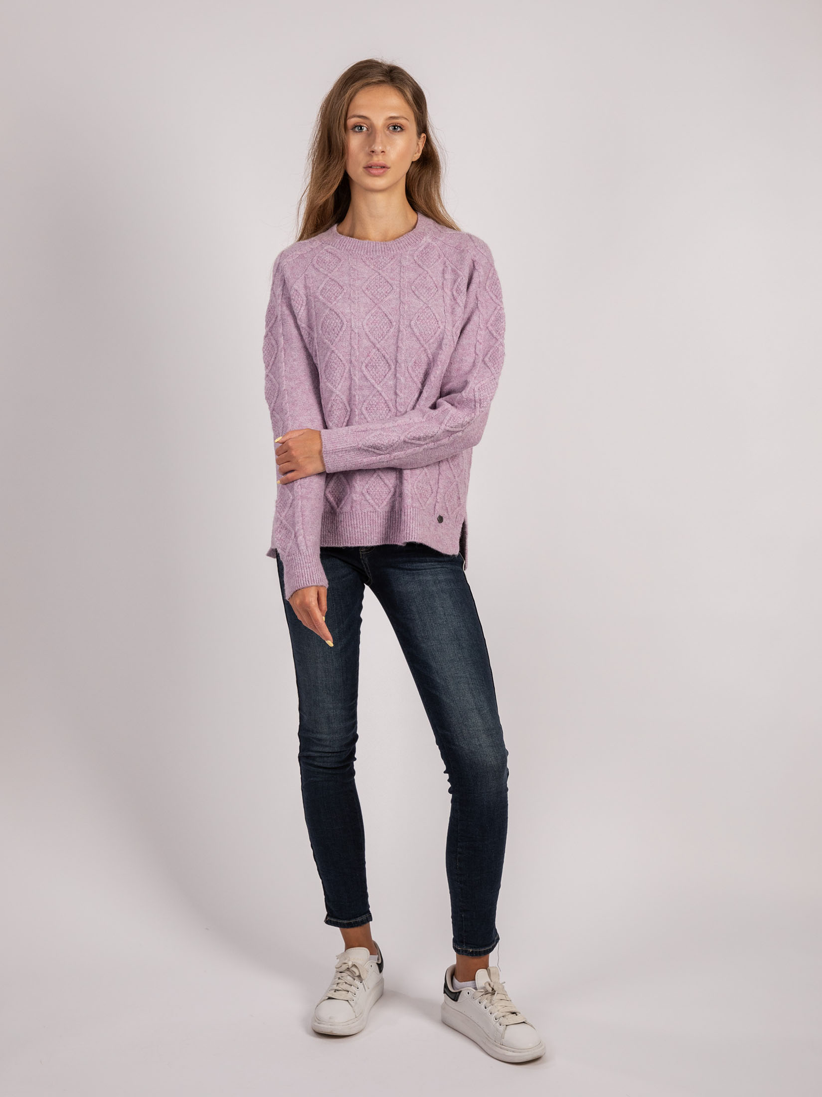 Winterlicher Pullover in Feinstrick aus Woll-Mischung. Der strickstoff wärmt und ist angenehm zu tragen. Der Pullover hat einen Rundhalsausschnitt und Zopfmuster vorne, hinten und an den Ärmeln. An den Schultern und an den Seiten gibt es besondere Details. Es ist hüftbedeckend sowie figurbetont geschnitten, sodass er deine Silhouette schön betont. Für einen gemütlichen Spaziergang bei kälteren Temperaturen kannst du ihn mit Ankle boots und lässiger Boyfriend-Jeans kombinieren!