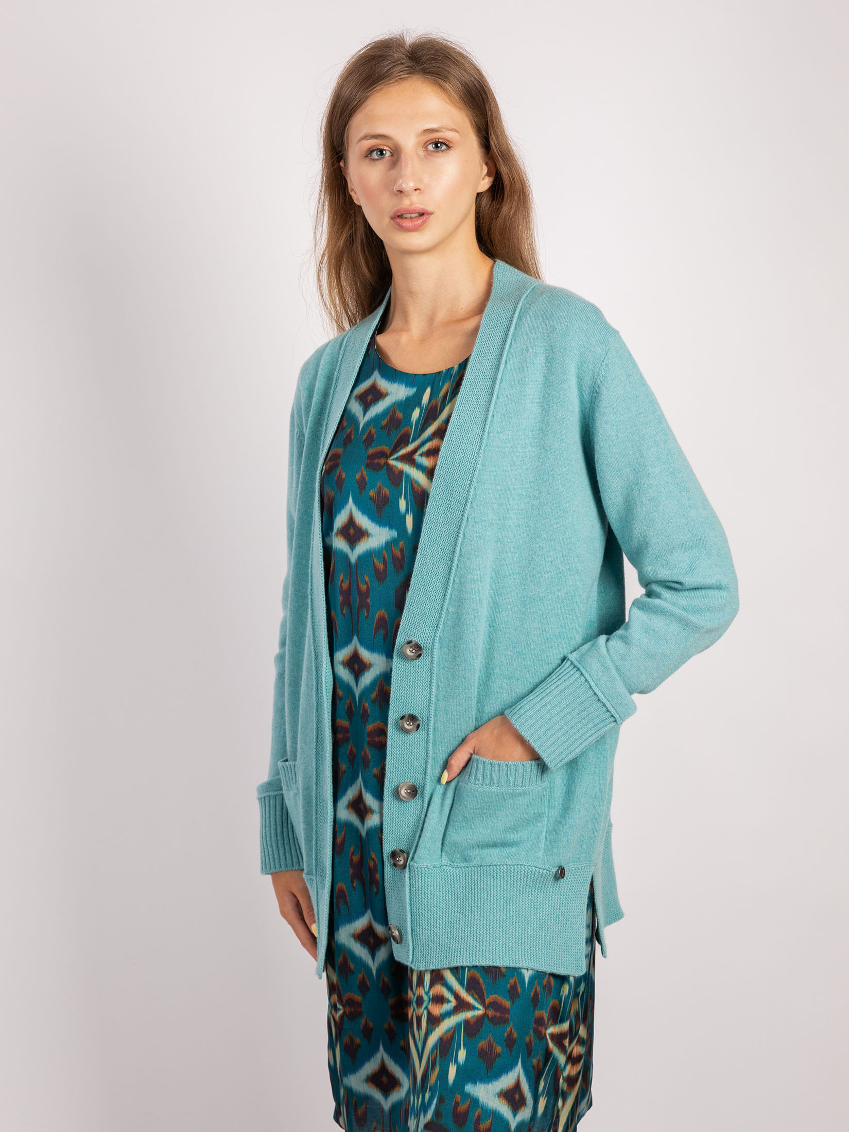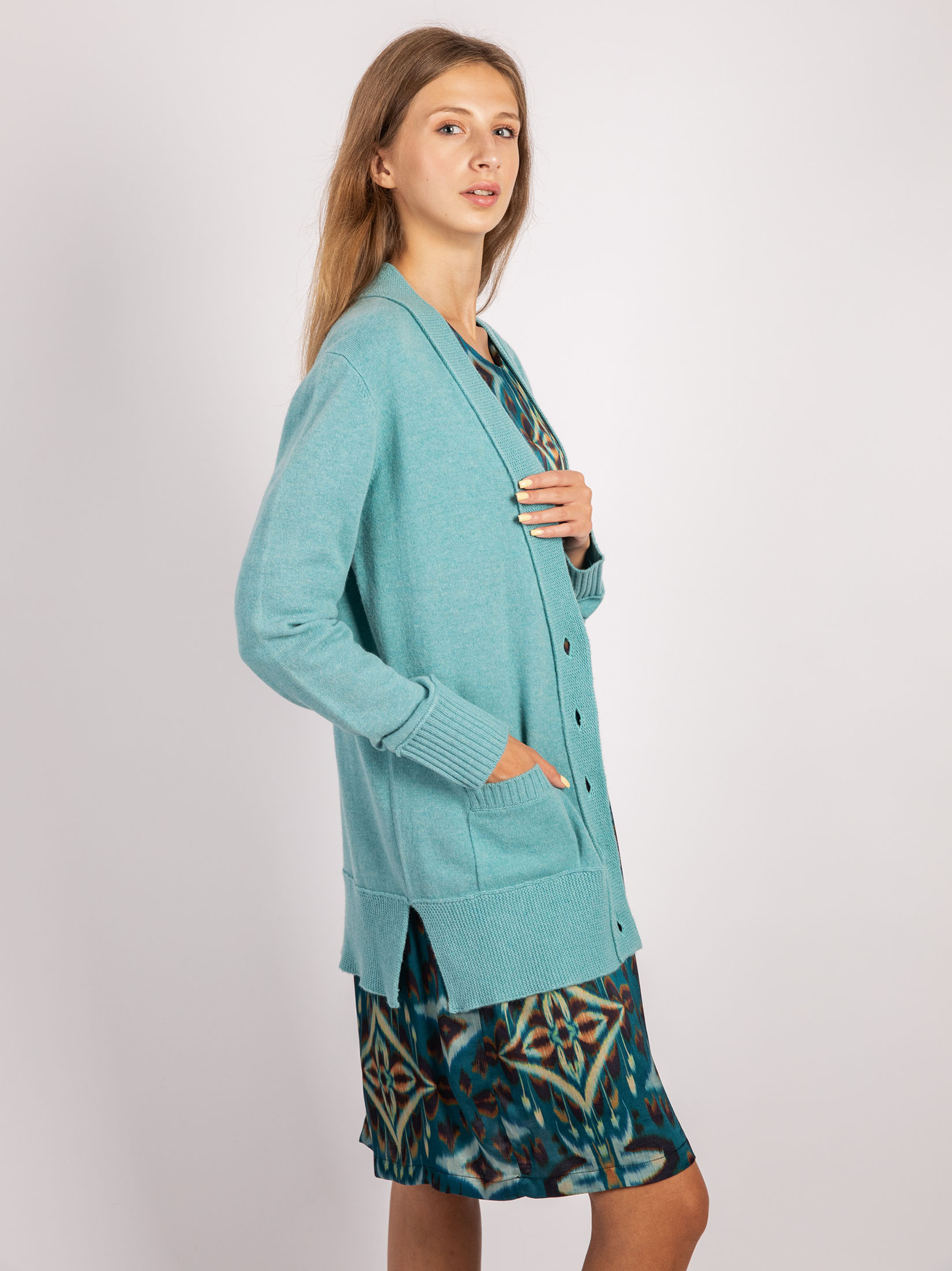 Cardigan in modischer form mit zwei Taschen aus feine Woll-Kaschmir-mischung. Die langen Ärmel schließen mit einem Bündchen ab. Damit können sie auch leicht hoch geschoben getragen werden, ohne dass sie wieder herunterrutschen. Der Schnitt des Cardigans ist hüftlang und lässig, so hast du genügend Bewegungsfreiheit in deinem Outfit. Der Cardigan hat einen V-Ausschnitt, der deine Lieblingskette in Szene setzt. Der Cardigan ist eine gute Wahl – mit Bluse kombiniert für die Arbeit oder bequemes T-shirt für entspannte Stunden.